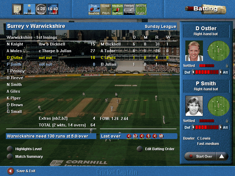 Warwickshire's 1996 squad requires a further 130 runs at exactly 5 an over to beat the Surrey 1996 squad. This situations