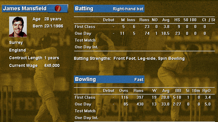 John can produce some major innings down the order but mainly against spin bowling and mainly when the chips are down - a good 30 from Mansfield has been