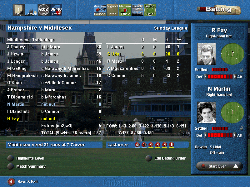 seriously weaker. Fraser at 7, Bloomfield at 8, Fay at 9, Blanchett at 10 and Nigel Martin at 11. Of course we all realised as soon as the last recognised batsman was out the